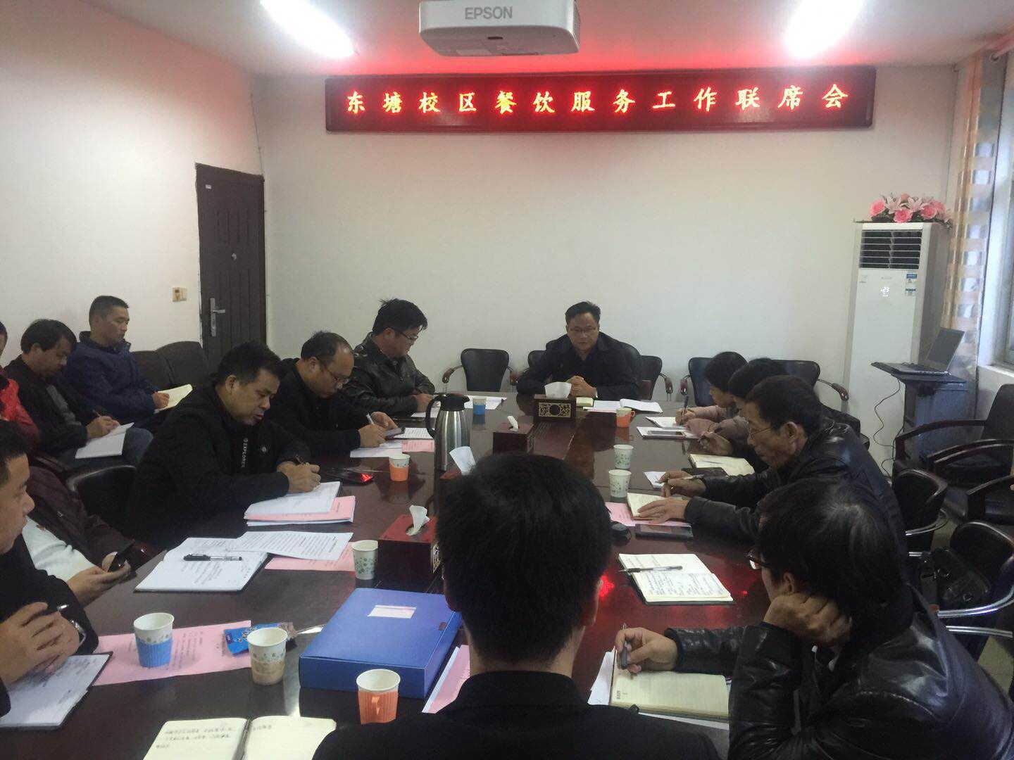 最后,易刚强副校长指出联席会定期召开很有必要,并对东塘饮食工作提出“三个保证“:必须保质量、保安全、保供应。保供应是前提,保安全是底线”;“八条严格”:一是严格履行合同;二是严格完善制度;三是严格执行工作联络反馈制度;四是严格落实联席会整改内容;五是严格执行奖罚制度;六是严格执行“清亲”合作关系;七是严格落实精细化管理;八是严格落实以人为本的文化建设,多些温馨提示和人文关怀。祝愿东塘餐饮树立品牌,争取成为全省高校示范食堂。
