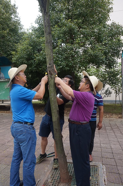 ——绿化巡视清理树干上的钉子和铁丝