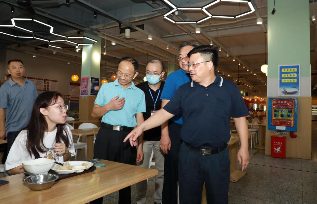 戴爱国一行深入细致了解开学工作流程和学生报到情况,充分肯定了疫情防控等各项开学准备工作,并对一线工作人员的付出表示感谢。在学生公寓、学生食堂、现代教育技术中心、指挥监控中心、图书馆等地,戴爱国一行认真听取了相关部门工作开展情况介绍,全面了解学生返校、教学设备、监控设备运行、食品质量、饭菜价格、安全卫生等各项开学工作情况。