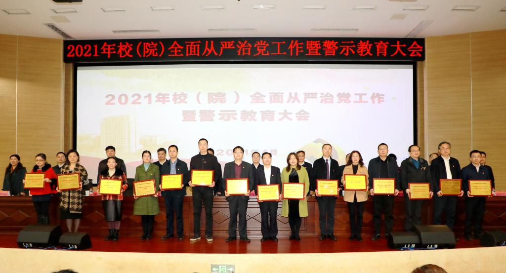 易刚强宣读了《关于表彰2020年度基层党建、党风廉政建设和宣传思想工作考核优秀单位的决定》,校(院)领导为获奖单位颁奖。