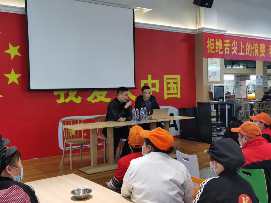 廖副所长首先为大家介绍了餐饮服务食品安全操作规范,从最基本的食品安全相关术语及定义,到食堂的场所与布局,再到食堂的原材料管理、清洗加工制作、供餐要求、食品安全管理及人员管理等综合要求,覆盖了食品加工的全过程,让所有员工能够自我对比,改进实际工作中的不足。廖副所长同时结合日常工作中的案例,列举了原材料管理方面容易出现的问题,告诫所有员工在原材料采购方面注意索票索证,做好台账,保证原材料货源的可追溯。此外廖副所长还介绍了在日常操作中容易出现的食品安全事故和处理方案。