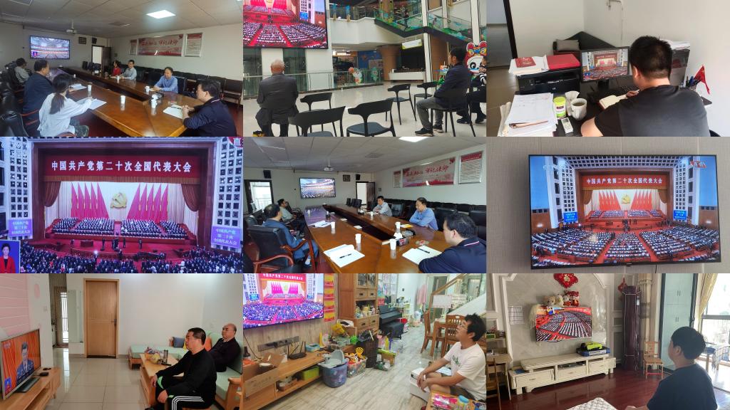上午10:00,全体党总支部委员及部分党员干部准时在后勤会议室集中收听收看二十大开幕盛况,第一时间学习领会大会精神。根据工作安排,其他党员干部职工分别用电脑、电视、手机自主收看,分别从10多个场所上传30多张实时收看照片。大家一起共同见证这一伟大历史时刻,感受着团结、奋进的时代脉动。