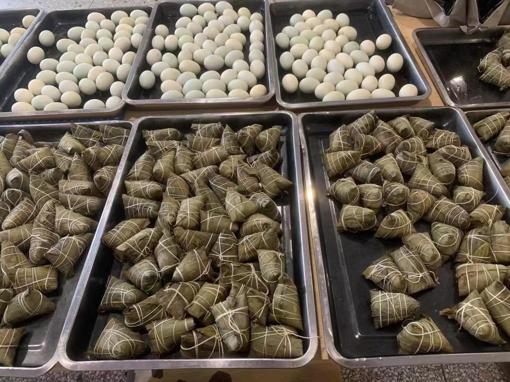 端午当天,含浦食堂员工全员在岗,保证供餐的同时,在学生一、二食堂为留校师生免费发粽子+咸鸭。香而不腻的肉粽、香醇黏糯的红枣粽,带着竹叶的淡淡清香,让就餐师生感受家的温暖。