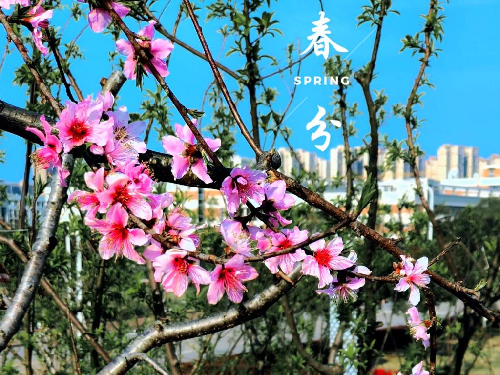 春风吹绿了新月湖湖水,吹红了桃李园桃花,吹醒了校园绿化带小草,吹来了湖中大姹紫嫣红的春天,那希望的绿、灵动的黄、炙热的红,让师生赏心悦目。