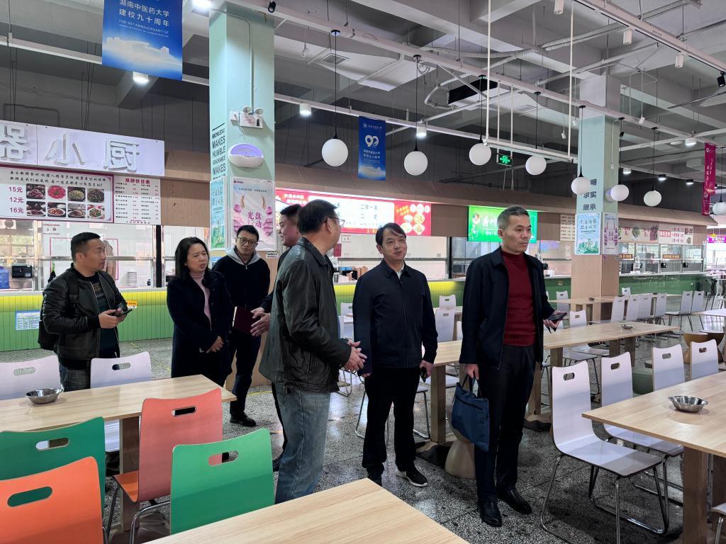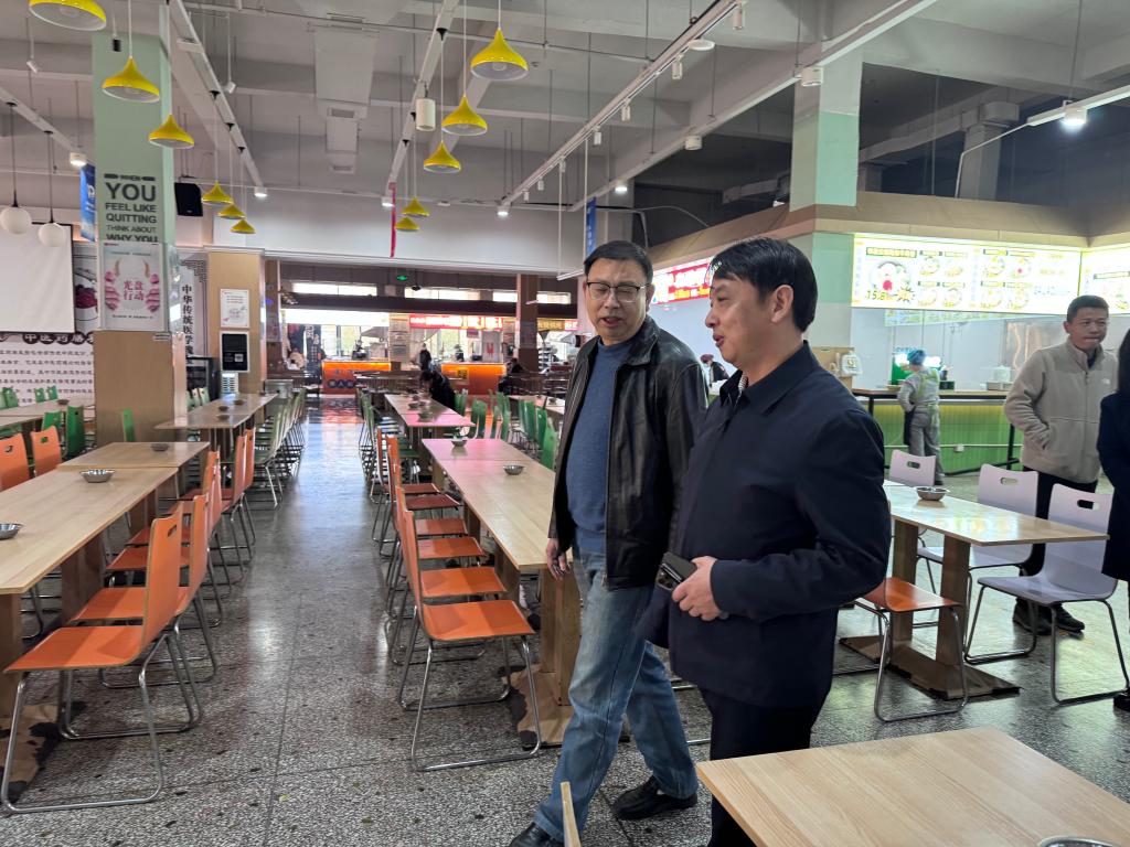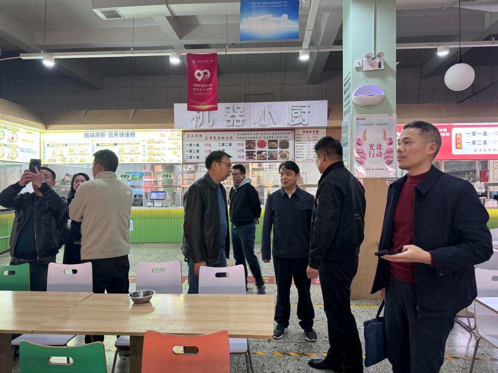 会后,在贺练军等陪同下,贺旭一行专程前往我校90周年校庆供餐场地学生食堂进行实地考察。双方就场地布置、餐线规划、人流引导、志愿者服务等具体细节,结合场地实际情况进行了现场交流与探讨。